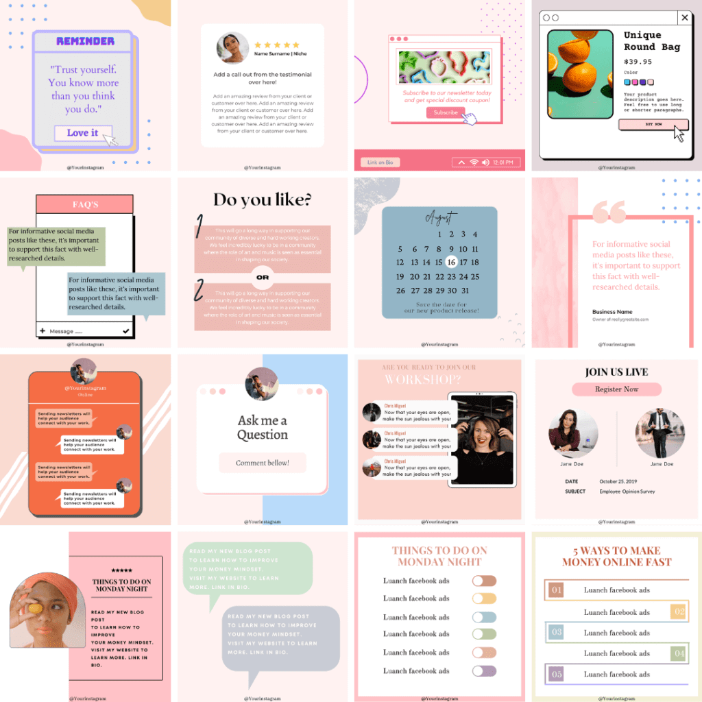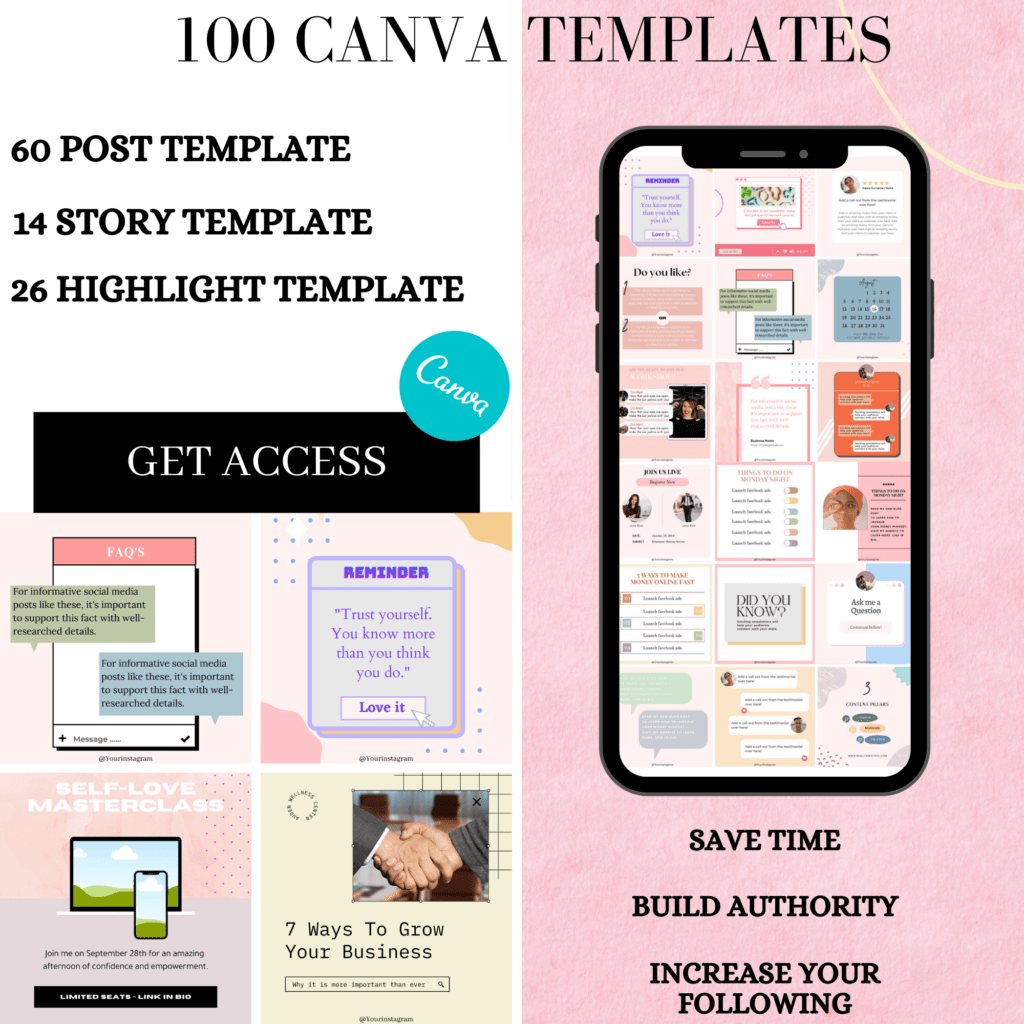 100 INSTAGRAM TEMPLATES INCLUDES: